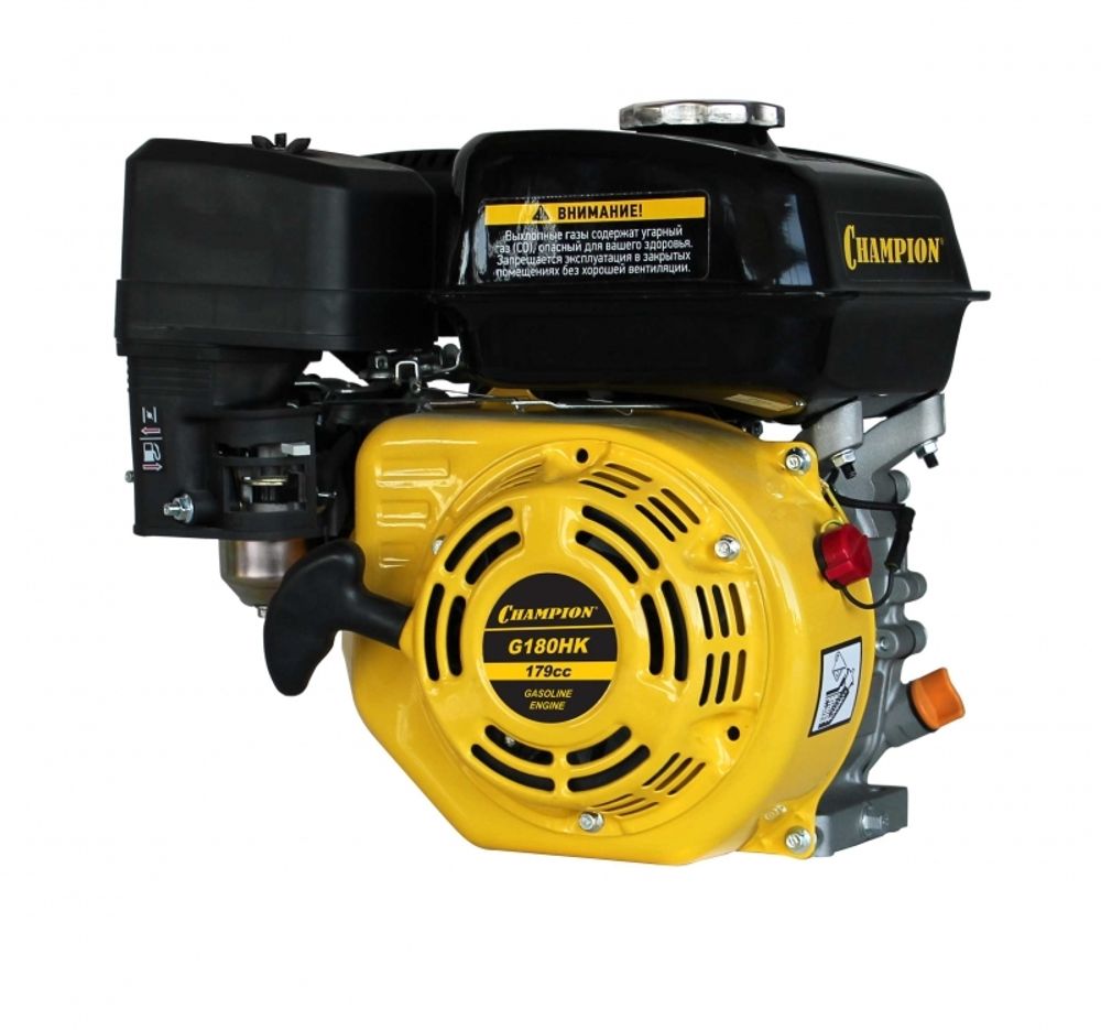 4-тактный двигатель с воздушным охлаждением и горизонтальным валом.